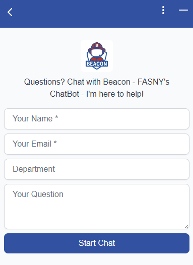 If at any point you’d prefer to speak with a human, Beacon will provide quick prompts you can click to connect with FASNY staff.