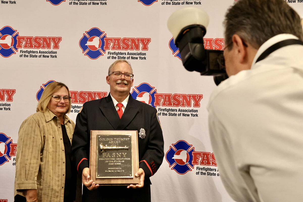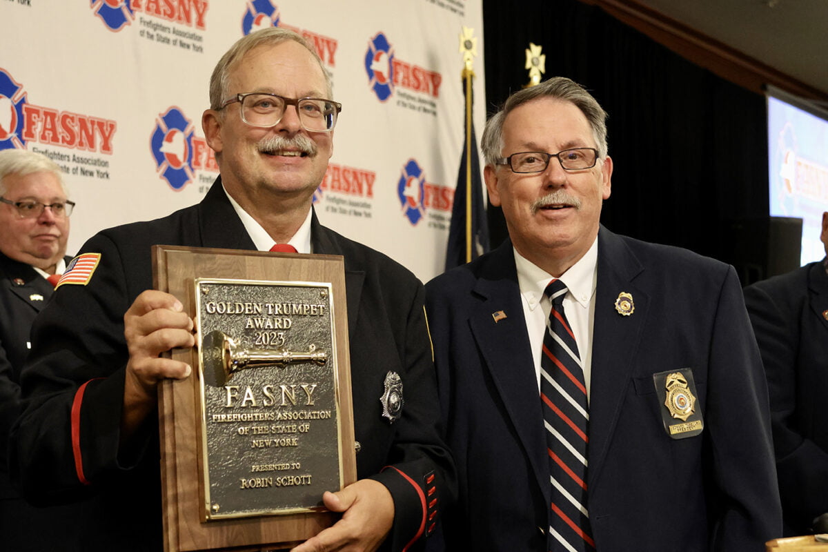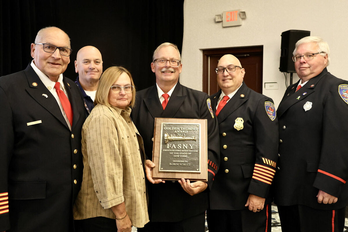 Robin Schott, past legislative chair, was honored with FASNY’s prestigious Golden Trumpet Award at its annual Legislative Conference held Nov. 3-5 in Troy, N.Y.